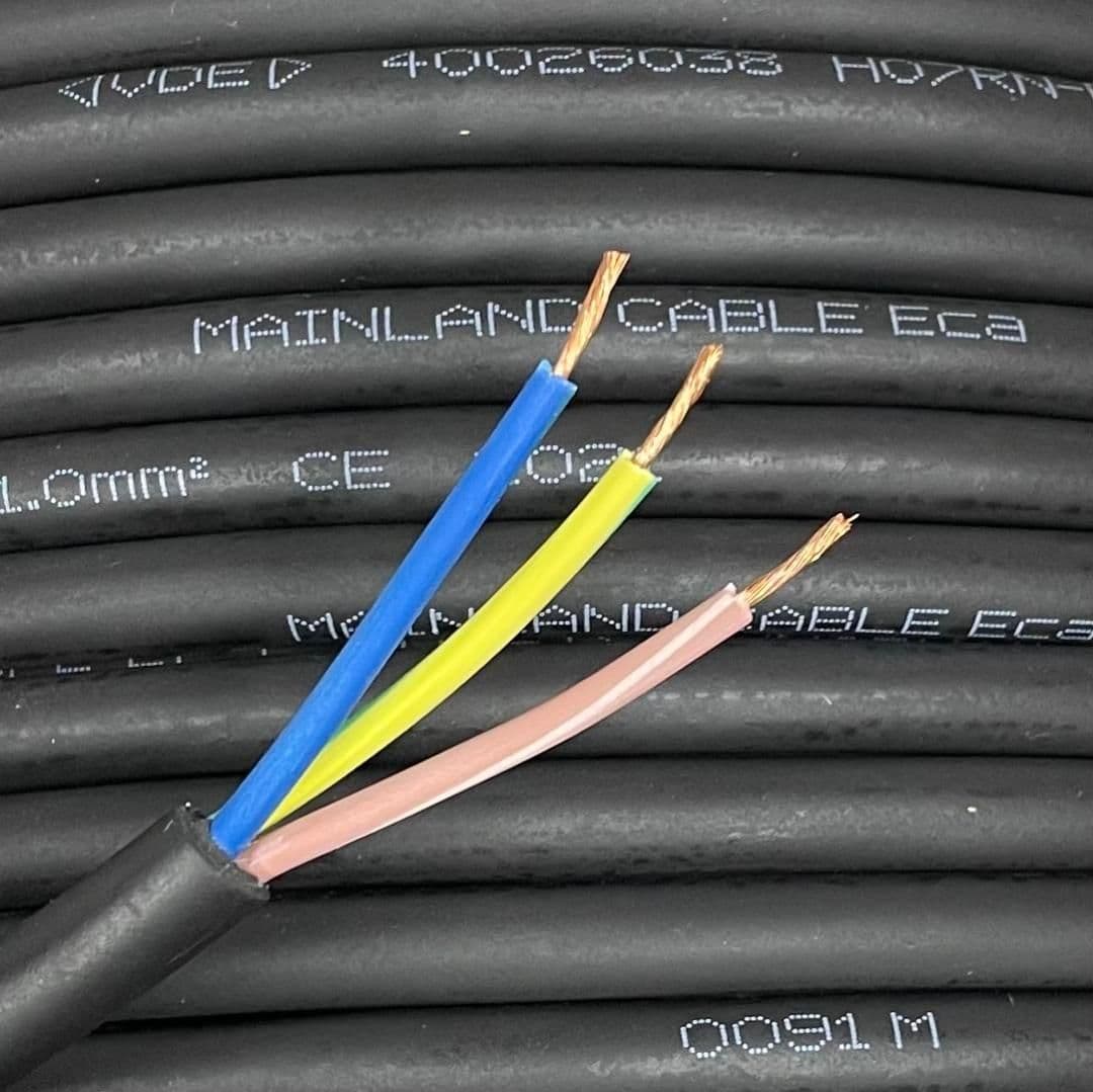 Home / Cable / 6183P H07RN-F Rubber Cable Product Description Heavy Duty Round RUBBER Flex for indoor and outdoor use 450/750V for indoor and outdoor including exposed to sun rays and resitant to oil (e.g. mechanical workshops) with higher risk of mechanical damage CENELEC HAR approved; H07RN-F type Standard BS7919 CENELEC HD22.4 VDE 281 Flexible copper conductors to BS EN 60228:2005 Rubber Insulated EI4 Polychloroprene rubber (neoprene) EM3 Sheated Max current rating 10Amps Temperature range -30C to +70C Harmonised Colours 3 Cores: Blue; Brown; Green-yellow This product must be installed in accordance with BS7671 Wiring Regulations Specifications Product Code 6183PB3C1MM5M Weight 0.725kg Customer reviews No reviews left yet Write A Review Sort byMost RecentTop Rated Delivery We aim to dispatch all orders placed before 12PM on the same day. Any orders placed after 12PM on Friday will be dispatched the following Monday We offer Free Delivery for all orders over £100 including VAT. Any orders under £100 there will be a shipping charge of £4.99 standard. For Shipping we use DPD ParcelForce and Royal Mail. The shipping prices are for UK Mainland Only. DELIVERING TO NON UK MAINLAND - Depending on the weight and size of your order, we may be able to deliver at no extra cost to Non UK Mainland areas such as Scottish highlands, offshore islands and Northern Ireland. If you are unsure, please send us an email. If you place an order with us and an extra postage cost is incurred then we will contact you. We DO NOT ship to PO Box numbers. Customer Reviews 6183P H07RN-F 3 Core Rubber Outdoor Cable Wire 1.0mm Black Product Code 6183PB3C1MM5M Cable Length 5 Metre 10 Metre 15 Metre 20 Metre 25 Metre 50 Metre 100 Metre £7.99 £6.66 (ex. VAT) Login to add this product to your wishlist.